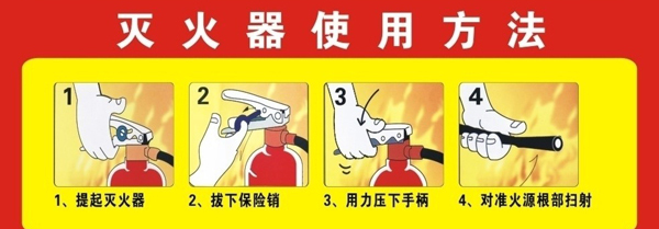 灭火器使用步骤五个字:看、提、拔、瞄、压。