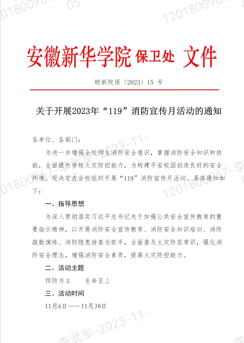 关于开展2023年“119”消防宣传月活动的通知