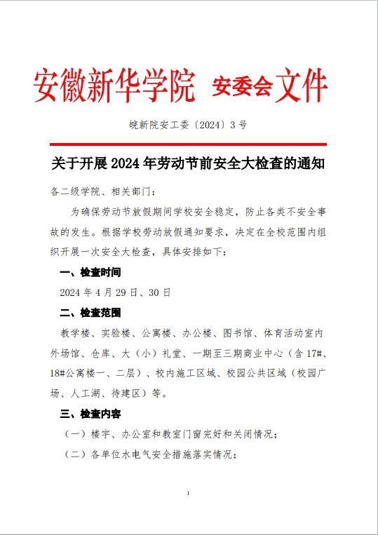 关于开展2024年劳动节前安全大检查的通知