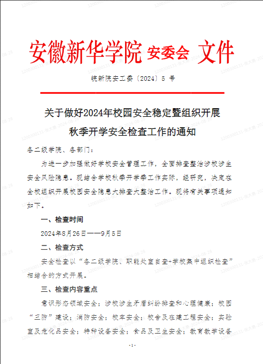 关于做好2024年校园安全稳定暨组织开展秋季开学安全检查工作的通知