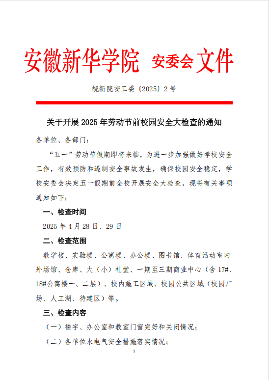 关于开展 2025 年劳动节前校园安全大检查的通知
