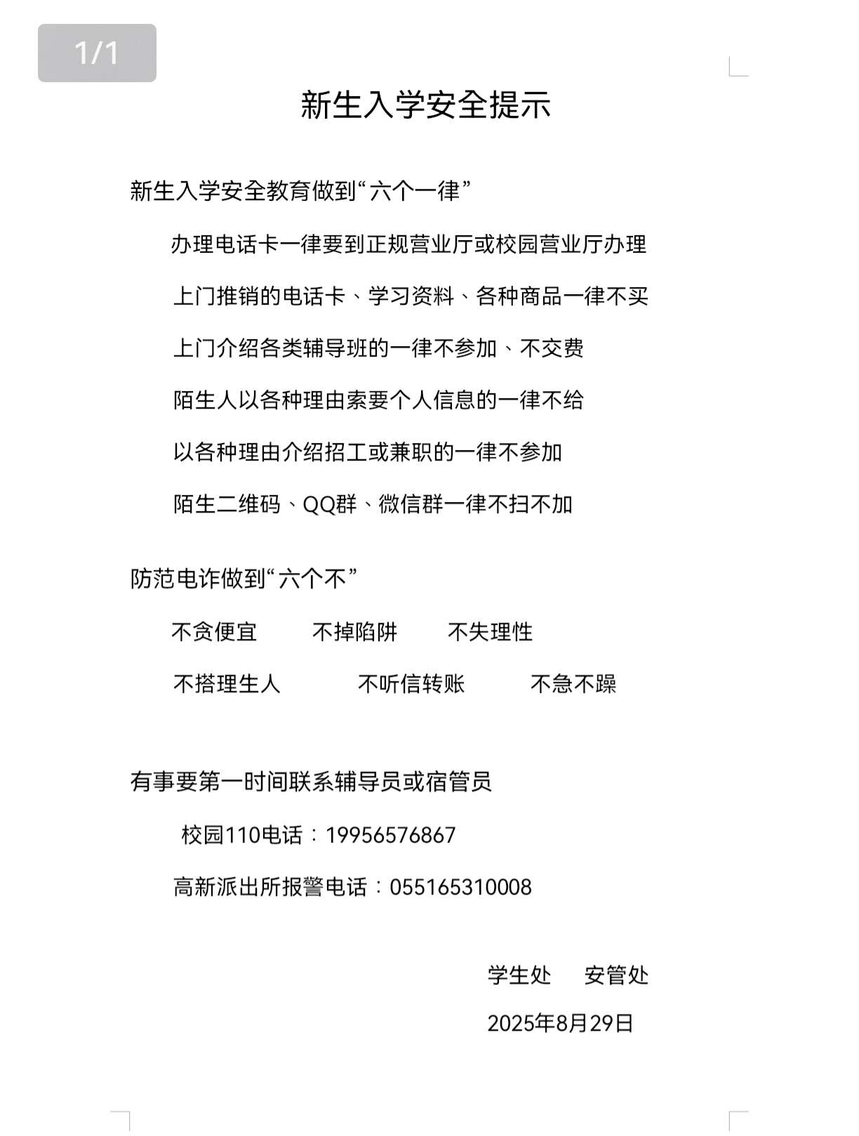 新生入学安全提示