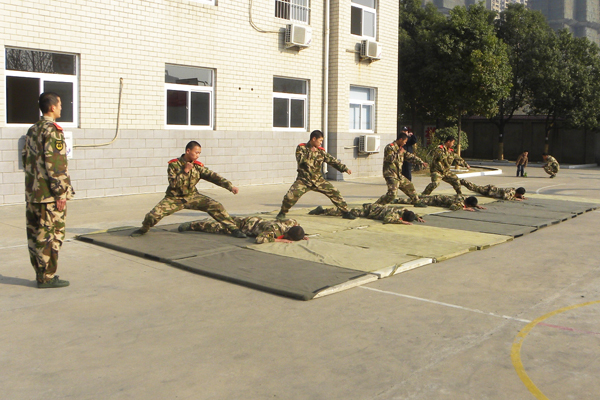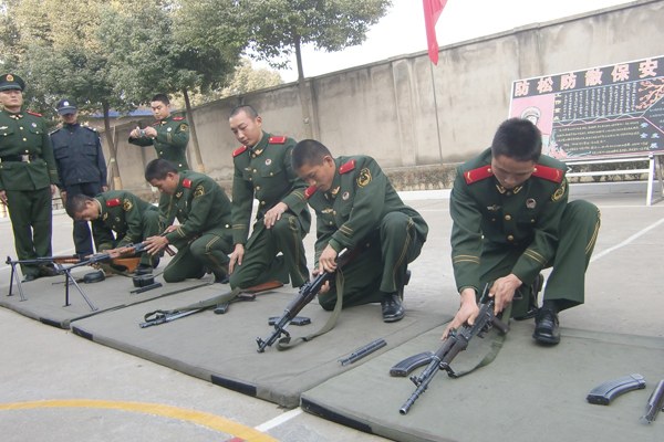 上午8时,护校队全体队员在图书馆楼前集合完毕,整装待发,8时30分登车出发。随着客车快速的前进,队员们的情绪逐渐高涨,一时间歌声笑声充溢着整个车厢。很快,客车到达了部队,在部队领导的安排下,队员们参观了内务,观看了枪械的拆装和擒敌拳、摔擒表演。一床床洁白无瑕的床单、叠放像豆腐块的被子、挂衣板上整齐划一的军装,方向一致的洗漱用品,让所有队员由衷的敬佩:“不是亲眼看到,简直不敢相信”。接着,大家观看了枪械的拆装表演,队员们第一次近距离接触到真枪实弹,内心万分激动。战士们一个个娴熟的动作,令人赞不绝口。特别是五分钟亲自感受真枪的体验,更是让全体队员终身难忘。随后,全体队员被带到了综合训练场,一个班的武警战士早已集合待命。随着指挥员的口令,擒敌拳、摔擒表演开始,看着战士们的拳法、腿法及擒拿格斗训练,大家掌声不断,内心不禁感叹:“中国武警。厉害!你们不怕苦不怕累,肩负着保卫国家的重任,你们辛苦了!我们要向你们学习!”