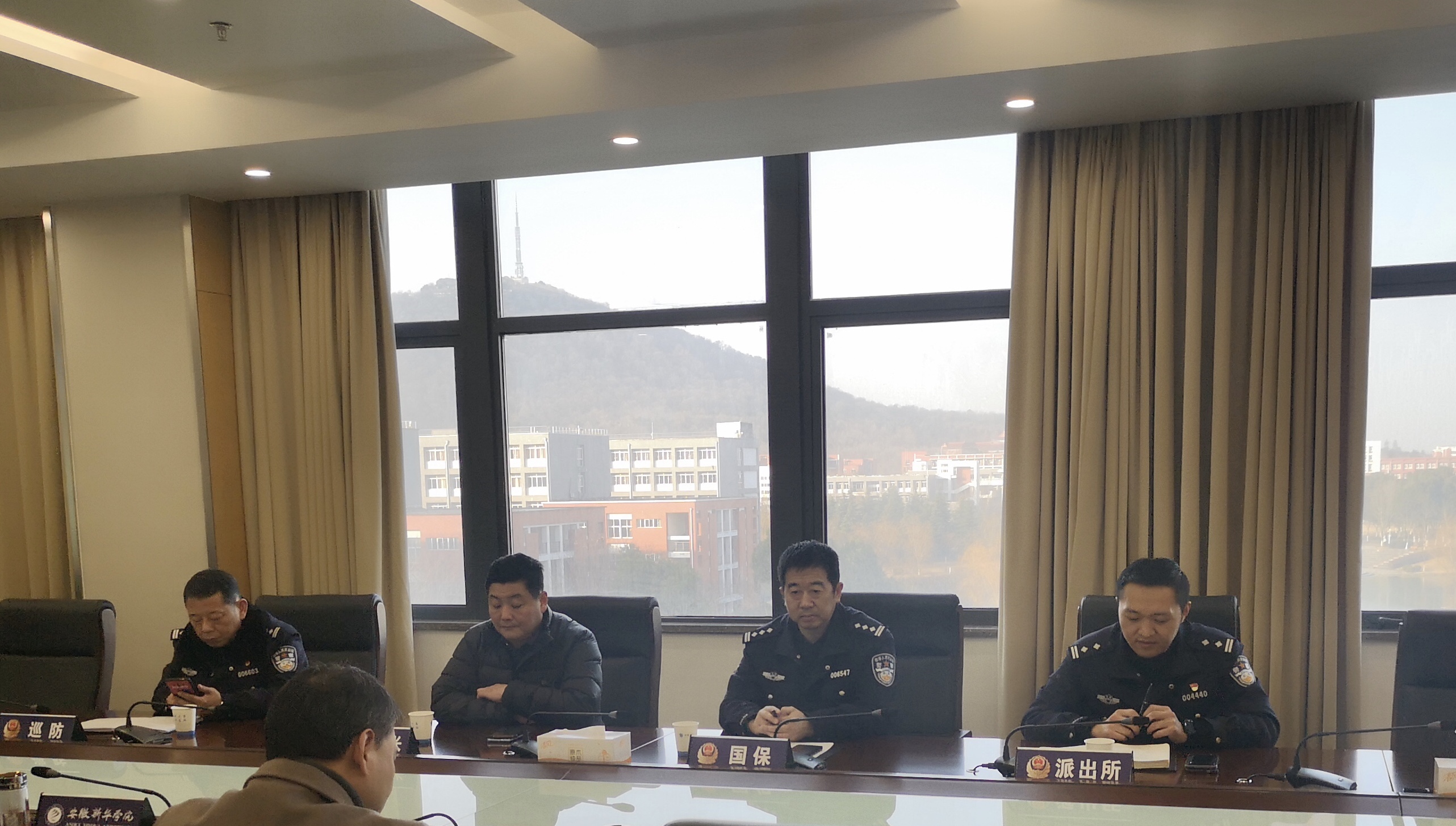 会上,保卫处副处长仇陶汇报了一年来学校安全工作开展情况,并对学校寒假校园安全管理、春季开学准备和联防联控工作进行了详细介绍。汪俊东对高新公安分局长期以来对学校安全工作的关心帮助和支持表示感谢,他希望学校与高新公安分局加强警校共建联动,充分发挥警校联防联控工作机制,共同做好校园及周边安全隐患排查整治,以及复学后学校可能遇到的情况和问题,为全校师生营造一个安全的学习和生活环境。高新公安分局各单位负责人就学校寒假期间组织开展校园治安巡防,做好突发事件应急处置和防范电信网络诈骗,及开学前后校园安全防范等进行了工作指导。