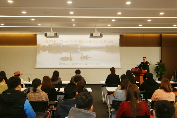本网讯(通讯员:田兴 摄影:翟漱文)为进一步提高辅导员防电诈宣传教育能力,4月15日上午,保卫处、学生处联合在科研办公楼一楼多媒体室召开防范电信网络诈骗辅导员专题培训,邀请高新派出所何驰副所长为全体辅导员做辅导授课。会议由保卫处副处长仇陶主持。