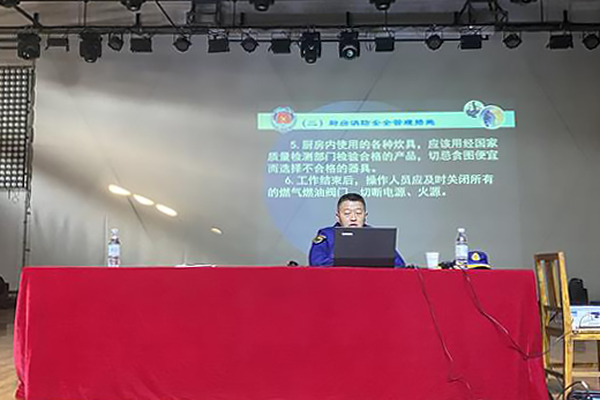 本网讯(通讯员:张炎)为全面做好校园安全工作,增强后勤服务人员的安全意识。10月26日下午,保卫处、总务处联合组织各经营单位人员、物业单位人员、宿管员、以及保安人员约300人在校大礼堂进行防范电信网络诈骗和消防安全知识专题培训,培训由高新派出所所长何驰、高新消防救援大队主任赵俊杰主讲,保卫处、总务处办公室相关人员也参加了培训。