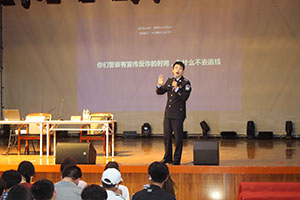 针对刚入学新生法制思想淡薄,防诈意识不强这个情况,杨大首先就一些基本法律常识与现场的学生进行了交流互动,他通过理论联系实际案例的方式,深入浅出,娓娓道来,他用风趣而接地气的语言为同学做了一堂生动的普法教育课。接下来,他运用发生在我们身边的案例和令人醒目的数据为大家展示电信网络诈骗给我们带来的危害,并分析了bat365近年来的电诈案件情况,语言幽默风趣,台上台下互动热烈,最后杨大用有奖竞答的方式,为同学带来了“肥肥小警”的礼物,让同学们更加深刻了解和掌握了防骗知识。