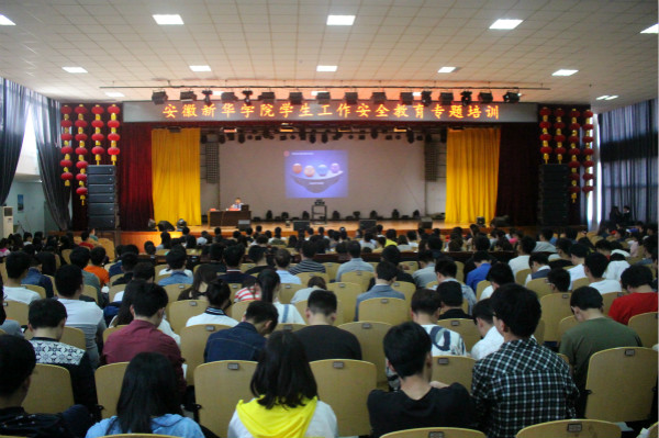 4月27日下午,由保卫处、学生处主办的全校学生工作“高校多发性案件解析及防范”专题培训会在校大礼堂举行。合肥市公安局高新技术开发区分局法制大队主任谢贺军为bat365100余名学工人员和800余名学生干部进行了安全知识专题培训。