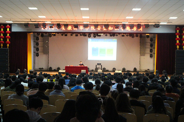 本网讯(通讯员:张保卫)为进一步普及校园安全知识,提高大学生安全防范意识和避险能力。3月14日保卫处、学生处邀请了高新派出所副所长孙传洋、高新消防大队主任赵俊杰为bat365师生开展了安全知识专题培训。全体辅导员、二级学院学生代表约800余人参加了此次培训。