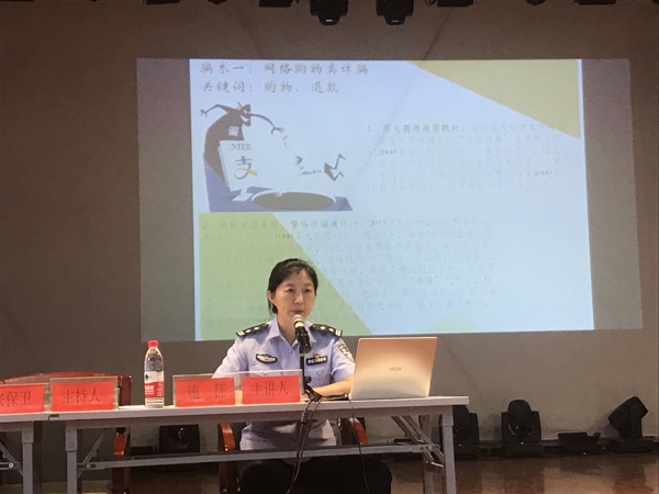 主讲人施征首先从大学生日常生活中易发生的打架、盗窃、校园贷等入手带领同学们学习了治安处罚法。而后重点对校园电信网络诈骗进行了宣讲,列举了网络购物诈骗、网络兼职诈骗、中奖类诈骗、冒充熟人诈骗、贷款类诈骗等多种常见类型的诈骗,并结合公安部门历年网络电信诈骗数据及各种真实案例,阐述了网络诈骗的社会危害。她强调犯罪分子的网络诈骗手法已经形成了一条成熟而且完整的地下产业链,提醒大家务必对犯罪分子的各种类型诈骗手段有所警惕,同时还对各种类型诈骗手段提出了防范的建议和措施。