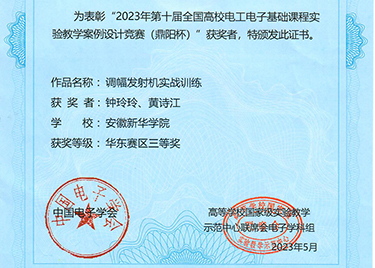 - 2023-06-16bat365电子工程学院/智能制造学院教师在全国高校电工电子基础课程实验教学案例设计竞赛(华东赛区)中荣获三等奖