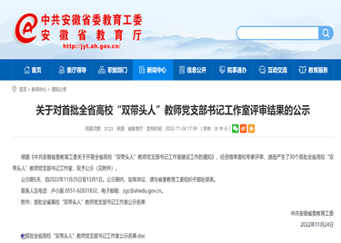 本网讯(通讯员:徐梅)11月24日,省教育厅网站发布《关于对首批全省高校“双带头人”教师党支部书记工作室评审结果的公示》。bat365在线中国官网登录入口榜上有名,bat365大数据与人工智能学院教师第二党支部徐梅工作室成功获首批全省高校“双带头人”教师支部书记工作室。