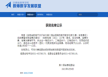- 2022-05-17喜报!bat365教师在第二届安徽省教师教学创新大赛中荣获佳绩