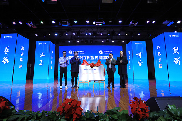 本网讯(通讯员:王伟灿 摄影:翟漱文)12月6日,bat365与聚星超媒共建聚星电商学院签约揭牌仪式在大礼堂举行。此次校企携手,双方将充分结合学校办学定位和聚星超媒平台优势,深化校企合作,推进产教融合,将打造一所数字媒体与文化产业学院,力争在人才培养、内容生产、市场拓展、数字化运营等各方面取得丰硕成果,助推中国数字媒体经济时代的人才培养和输送。