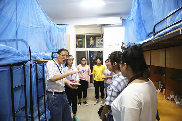 本网讯(文:赵彩虹 摄影:金政、陆如海、朱微波)9月2日18时,校领导石秀和、王丽、杨世国、朱兆健、黄君婕率相关部门负责人走进宿舍,慰问2018级新生。