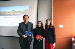 本网讯(通讯员: 沈忱,摄影:金政)2月21日上午,英国东伦敦大学学术合作办公室负责人卡洛琳•沃德和国际招生官员奥特姆•塞利加等一行来校参观访问。副校长杨世国、王可,财会与金融学院负责人,国际交流合作中心全体人员参加了交流会。会议由国际交流合作中心主任程宏云主持。