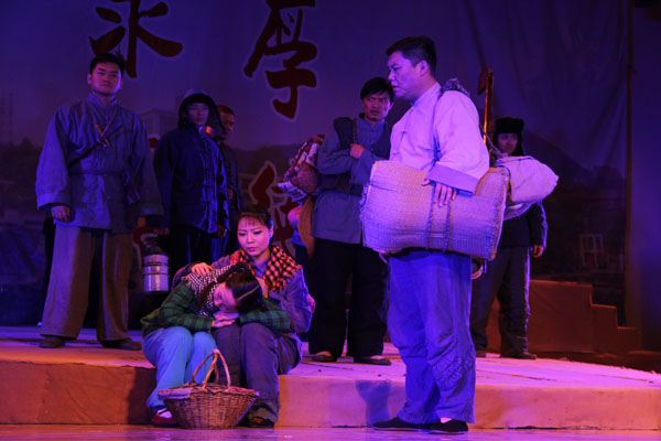 本网讯(学生记者 詹红 金典)12月16日晚,安徽省话剧院的艺术家们在bat365大礼堂进行了“建国65周年精品话剧巡演活动”专场演出。bat365副院长陆真、马凤余,各二级单位负责人与1000多名师生共同观看了演出。