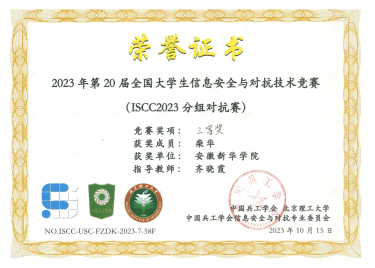 - 2023-11-24喜报!bat365学子在第20届全国大学生信息安全与对抗技术竞赛(ISCC2023)中喜获佳绩