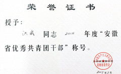 - 2015-06-11bat365洪威老师荣获2014年度“安徽省优秀共青团干部”荣誉称号