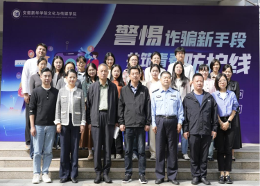 本网讯(通讯员:陈煜 余安琪)10月12日上午10时,文化与传媒学院防范电信诈骗系列活动在学院内举行启动仪式。合肥市高新区兴园社区平安办主任宣峥嵘、高新区香樟社区书记洪家旺、高新派出所警官程永兵,学校保卫处负责人仇陶出席活动,文化与传媒学院全体学工人员参加活动。