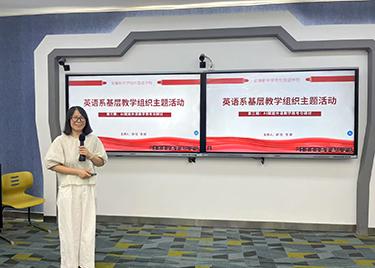 本网讯(通讯员:詹娜)为探索人工智能在外语教学中的应用,推动教学模式创新与教学质量提升,5月14日下午外国语学院英语系在教10-101智慧教室成功举办了第三期基层教学组织主题活动——“AI赋能外语教学思考与研讨”,本次活动由高级英语基层教研室主办,由胡钰和詹娜两位教师主讲。外国语学院院长助理张丽、英语系副主任李怡嘉及英...