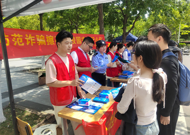 本网讯(通讯员:张大勇) 为增强师生防诈意识,营造安全校园环境,4月25日中午,bat365联合兴园中心、香樟社居委、高新派出所,在学校二期广场开展反诈主题宣传活动。兴园中心平安部部长宣峥嵘、高新派出所民警程永兵、香樟社区和学校安管处相关人员参加了宣传活动,华园义警队全程协助,现场近千名学生参加活动。