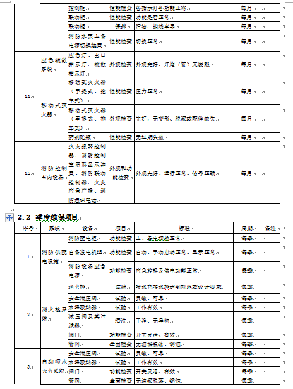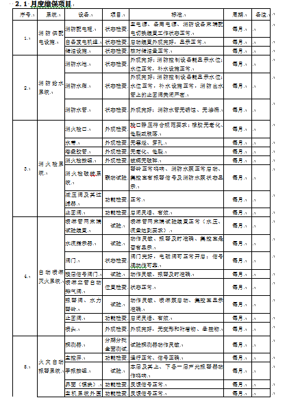 4.1根据维护保养项目消防设施的类别和规模,结合维保周期(月、季、年)的不同工作内容,制定相应的维护保养工作计划,由维护保养项目人员具体实施,完成定期维修、保养后,应出具上月《消防设施维护保养报告》由项目负责人、技术负责人审核后出具。