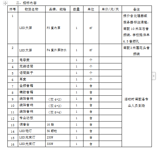 舞美设备租赁服务年度集中采购招标报价公告