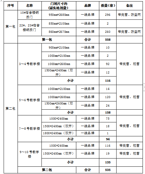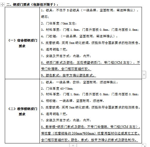 2、项目名称:《宿舍楼、教学楼钢质门供货及安装项目》