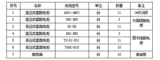 1.项目名称:1#开闭所及附属配电房高低压柜项目