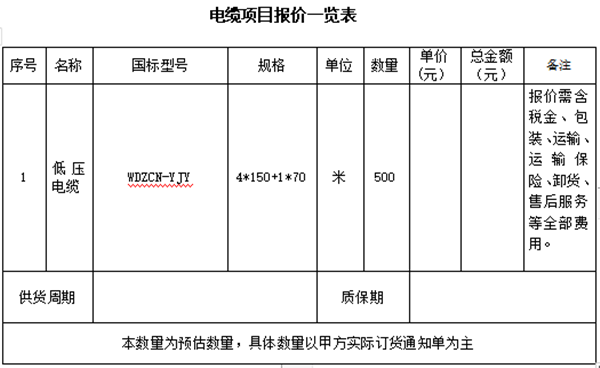 电缆采购招标询价公告