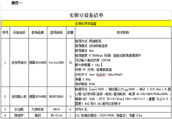 详见附件一:实验室设备清单