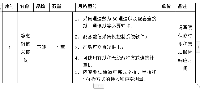 bat365在线中国官网登录入口静态数值采集仪采购询价公告