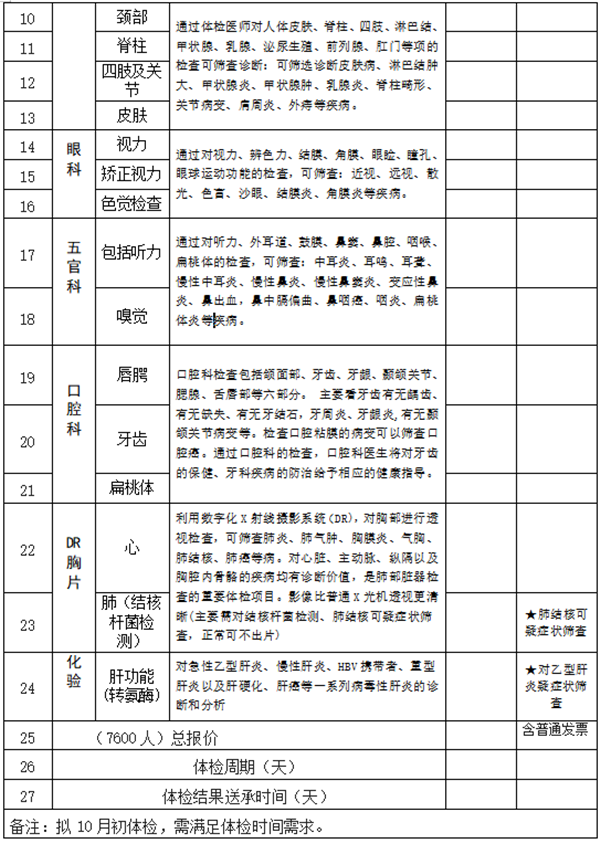 1.报价人对上述体检项目所需的费用进行报价;