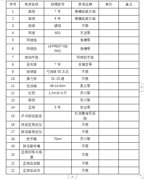 详见附件一2021-2022年度体育用品类采购清单