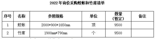 2022年学生公寓物品之蚊帐和竹席询价公告