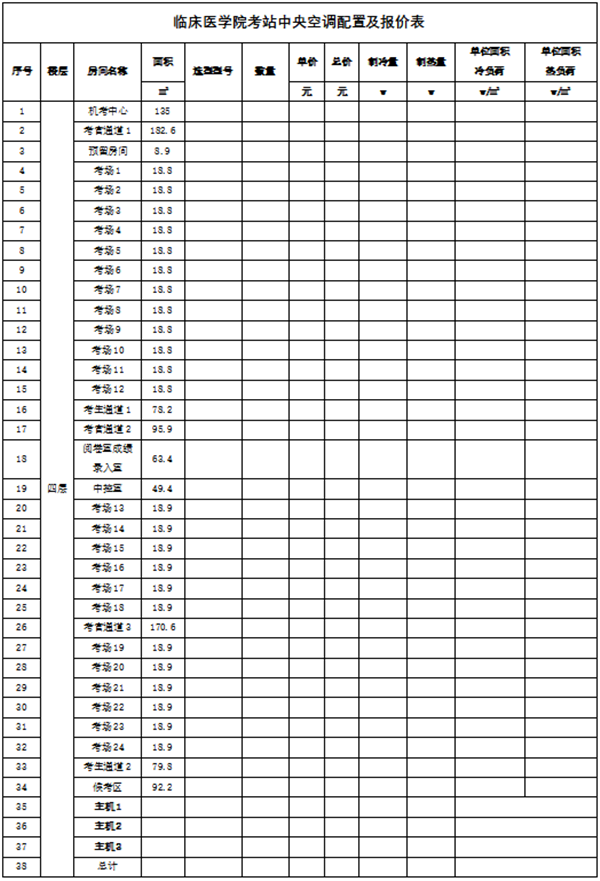临床医学院考站中央空调配置(详见下表)。