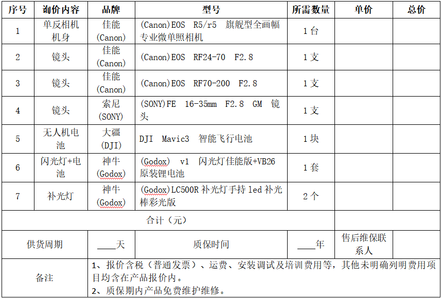 bat365在线中国官网登录入口相机、镜头及补光灯等设备采购项目询价公告