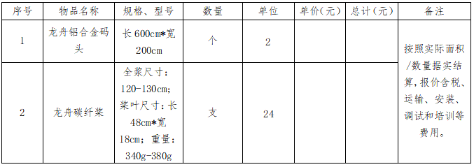 bat365在线中国官网登录入口龙舟铝合金码头、龙舟碳纤桨采购项目询价公告