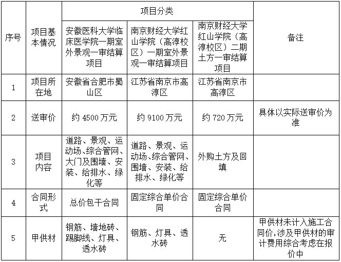 2.项目名称:安徽新华集团旗下院校室外景观及土方工程一审结算审计项目