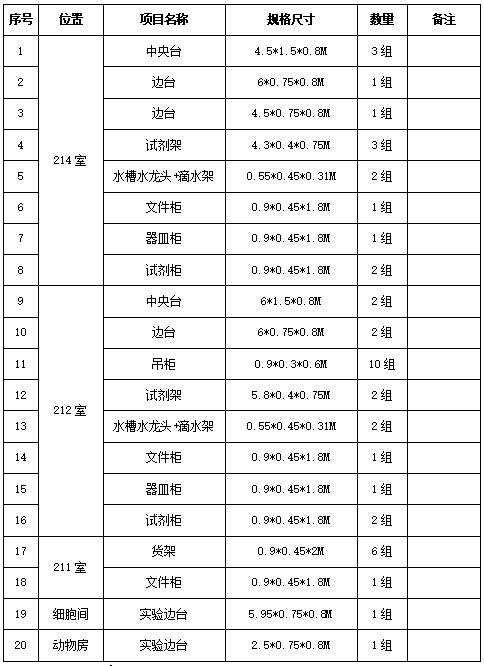 2.项目名称:安徽医科大学临床医学院理化实验台柜项目