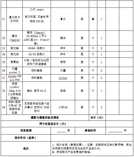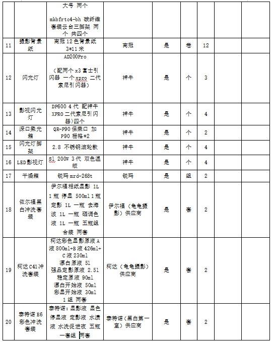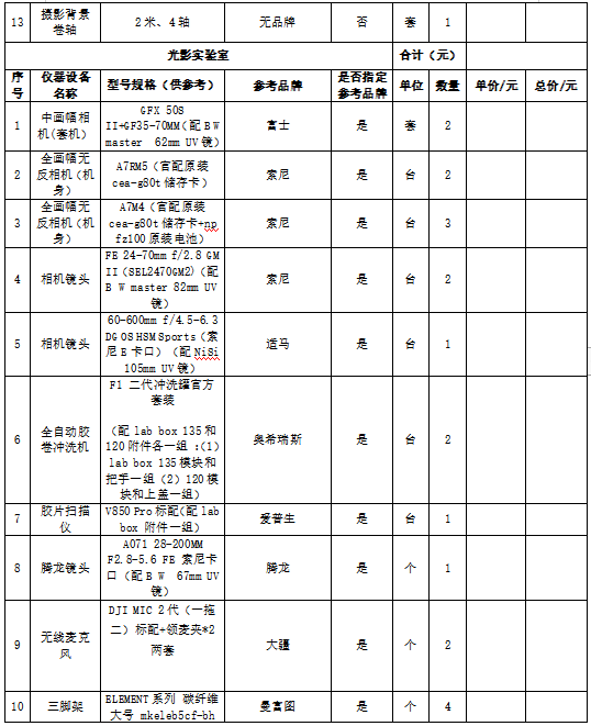 2.项目名称:摄影器材等设备采购项目