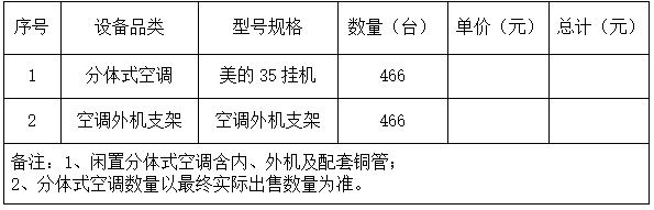 空调设备出售公告