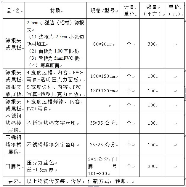 2、招标项目:bat365在线中国官网登录入口铝型材、海报夹及标牌等制作安装项目