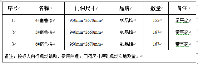 2、项目名称:《4#、5#、6#宿舍楼钢质门项目》