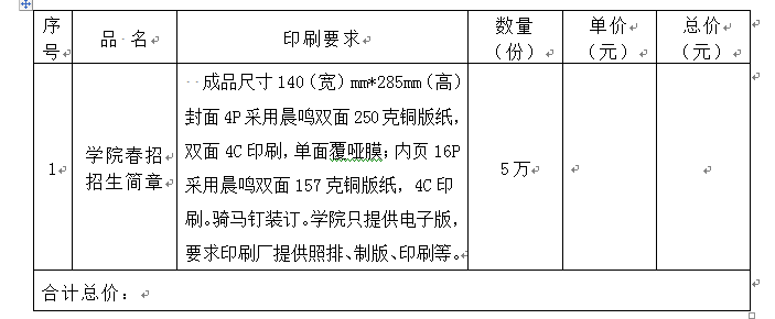 二〇一八年bat365在线中国官网登录入口春招招生简章印刷邀标公告