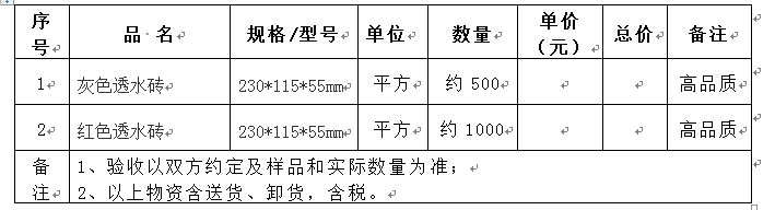 透水砖询价公告