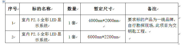 2、招标内容:室内全彩LED显示系统项目;
