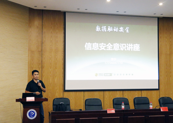 9月19日是本次宣传活动的网络安全教育主题日,bat365邀请360企业安全集团安徽分区技术总监李宁为全校师生带来了一场“数据驱动安全——信息安全意识讲座”,通过“什么是信息安全”“信息安全的重要性”“如何防范危险”“亲身事例”四个方面进行深入讲解。讲座图文并茂、形式活泼,激发起现场听众的强烈兴趣。最后,信息化建设与发展中心副主任王志发言。他指出,本次讲座是2018年bat365在线中国官网登录入口网络安全宣传周活动的重要组成之一,他向360企业安全集团对学校活动的大力支持表示感谢,希望能够增进校企合作深度。同时,他希望学生们能够认真学习相关法律法规,树立正确的网络安全意识,增强网络安全基础技能,规范日常网络行为。