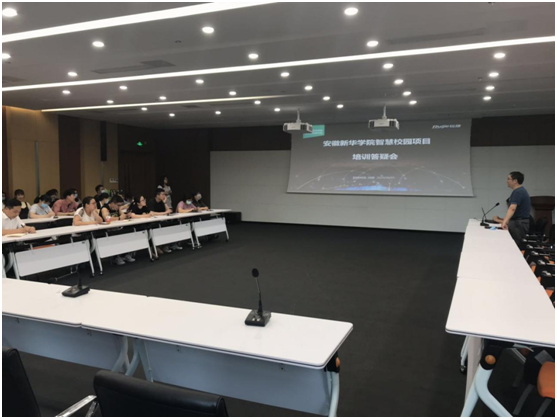 紧接着由智慧校园建设方工程师刘勇进行智慧校园使用方法讲解,包括智慧校园项目整体建设内容,各平台的登录账号、使用方法、注意事项等,随后由信息中心老师针对现场参会人员提出的问题进行一一解答,包括上线时间、账号问题、学生流程、问题反馈方式等,并且现场组建智慧校园上线交流群,为项目正式上线后教职工反馈问题提供沟通渠道。